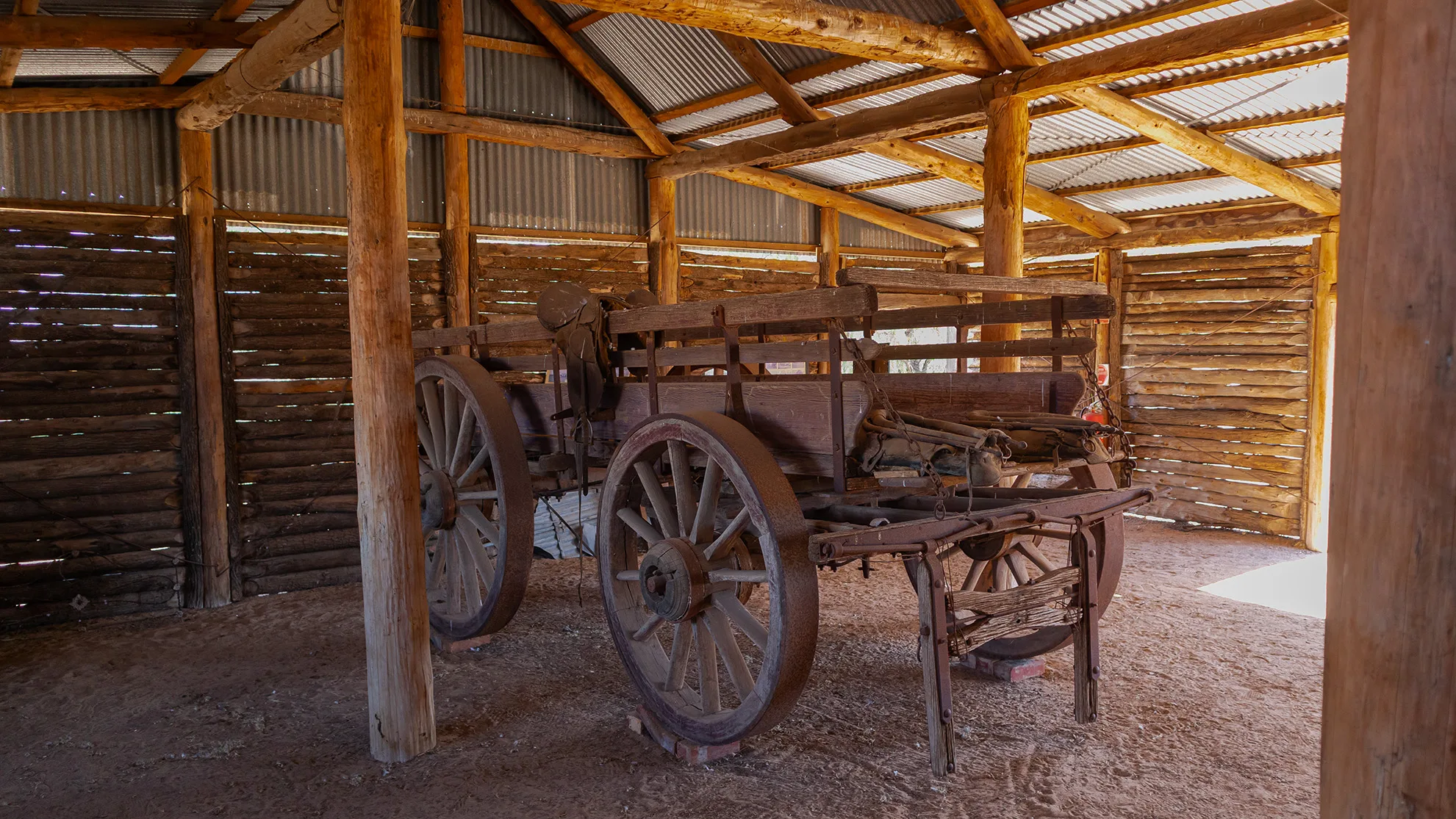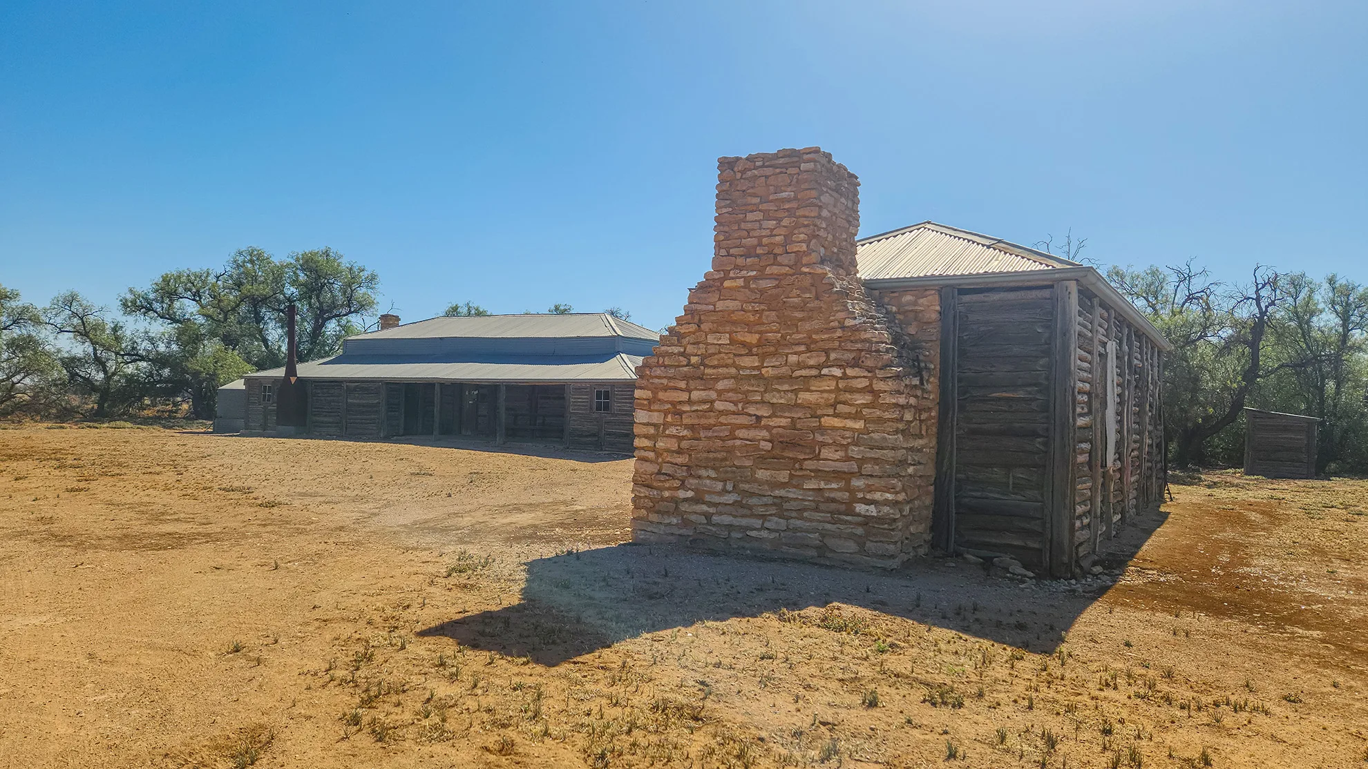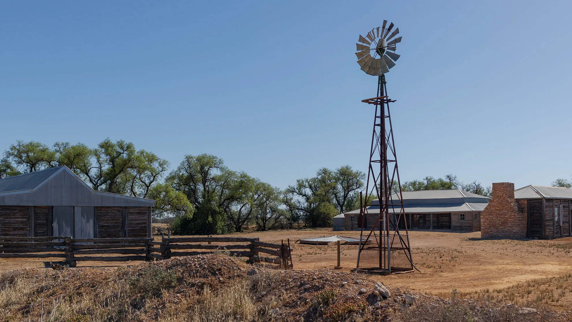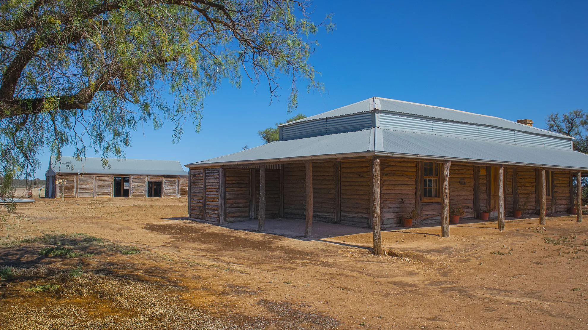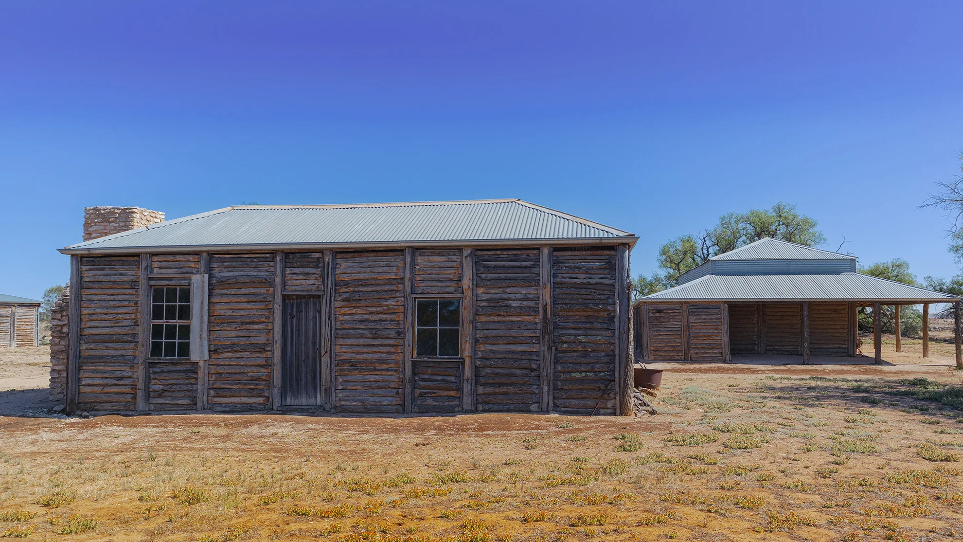 The Yanga Homestead, built around 1870, served as the station’s headquarters. Its unique Murray pine “drop log” design and surrounding gardens reflected the prosperity of the time.